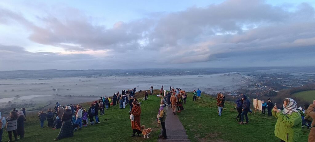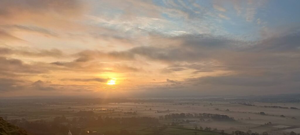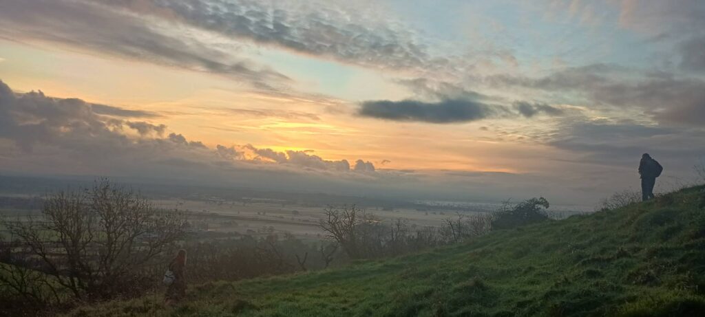 Celebrating the shortest day of the year by watching the sunrise at Glastonbury Tor, followed by a ride by the sea.